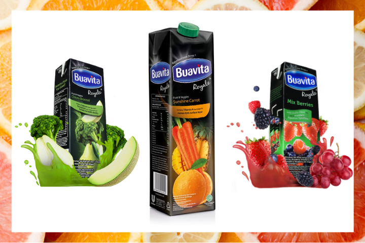 Mau perpaduan beberapa jenis buah atau bahkan jus sayuran? Buavita Royale pilihan yang pas, Moms! Jusnya kental, banyak vitamin, dan tentunya banyak pilihan rasa enak. Buavita Royale menghadirkan varian Sunshine Carrot (wortel, jeruk, nanas), Chloro Broccoli (pir, melon, jeruk, brokoli), Mix Berries (stroberi, blueberry, raspberry), dan Cranberry & Grape.