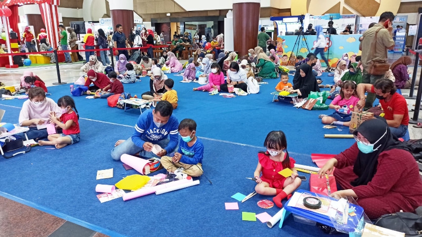 Di hari kedua MB Fair Surabaya 2022 ini digelar DIY Toy Kids Competition. Di sini, para peserta, anak dan orang tua, kompak bekerja sama membuat mainan gitar dari kardus yang keren. Acara juga dimeriahkan dengan kids performance by Morinaga.