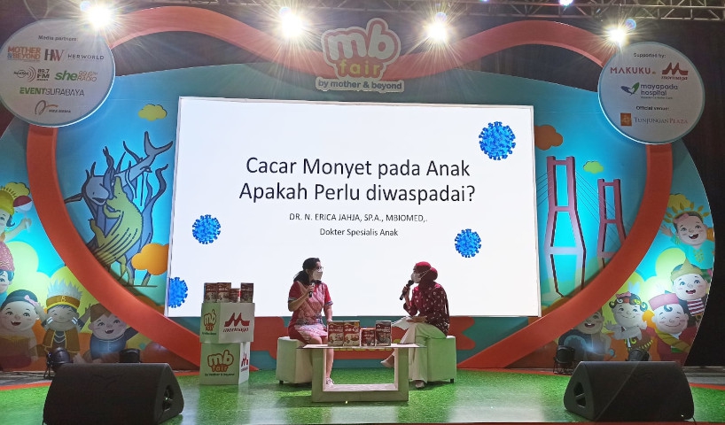 Sambil menunggu pengumuman pemenang Coloring Competition, para pengunjung MB Fair Surabaya hari ini berkesempatan untuk mengikuti talk show dengan tema “Cacar Monyet pada Anak Apakah Perlu Diwaspadai?” bersama narasumber dr. Natalia Erica Jahja Sp.A M.Biomed.
