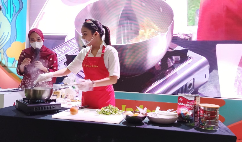 Setelah pengumuman pemenang Coloring Competition, pengunjung mengikuti acara Cooking Demo bersama Chef Christina Ribka yang merupakan alumni MasterChef Indonesia Season 5. Dalam kesempatan tersebut, Chef Christina membuat menu Morinaga creamy pasta with tomato and spinach. Usai cooking demo, diumumkan juga para pemenang Mom’s Secret Recipe with Morinaga.