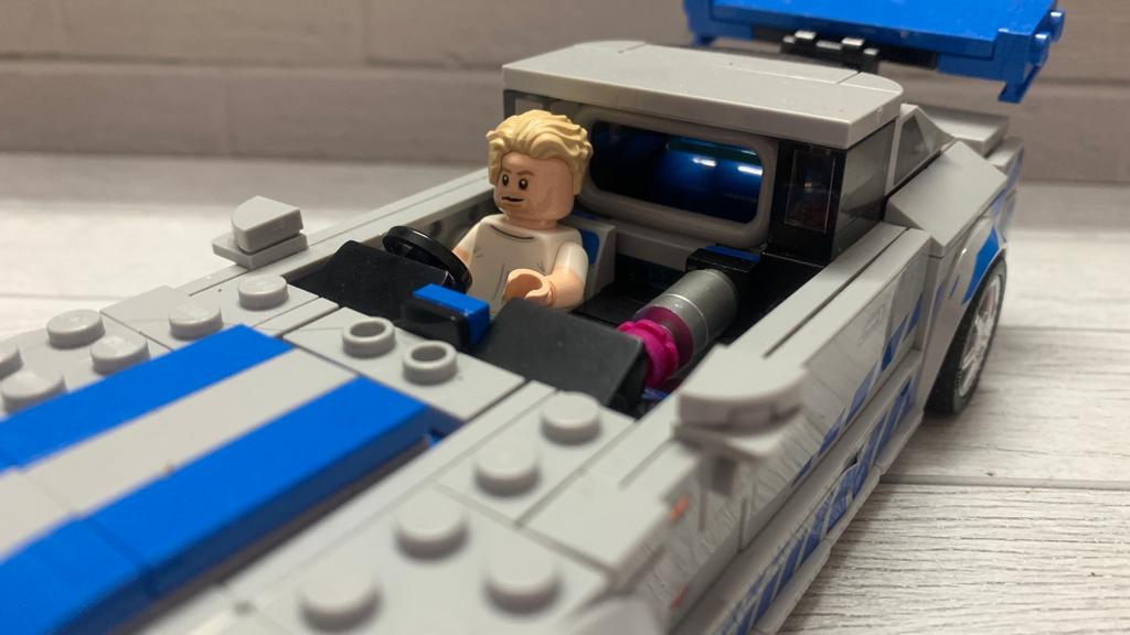 Lihat deh, garis-garis biru ikonik di bagian samping, sayap di bagian belakang, kisi-kisi di bagian depan, maupun detail komponen mesin di kursi penumpang, semuanya persis seperti mobil aslinya. Yang bikin tambah seru, set LEGO ini juga dilengkapi dengan minifigure Brian O’Conner, tokoh fiksi utama dalam film Fast & Furious. Keren, ya!